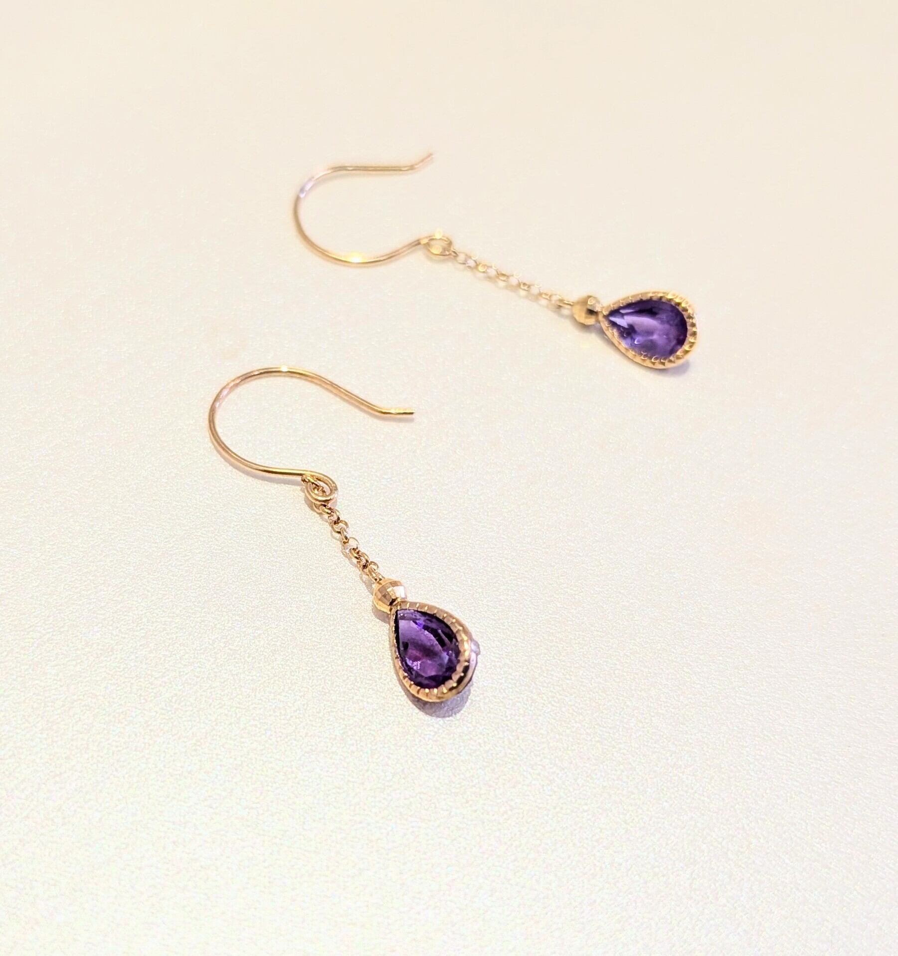 人気のミル打ち枠に美しく収められたアメシストピアスです。アメシストの深い紫色が際立ち、顔まわりを華やかに演出します。ミル打ちの繊細なデザインが、シンプルでありながらも上品な印象を与えます。