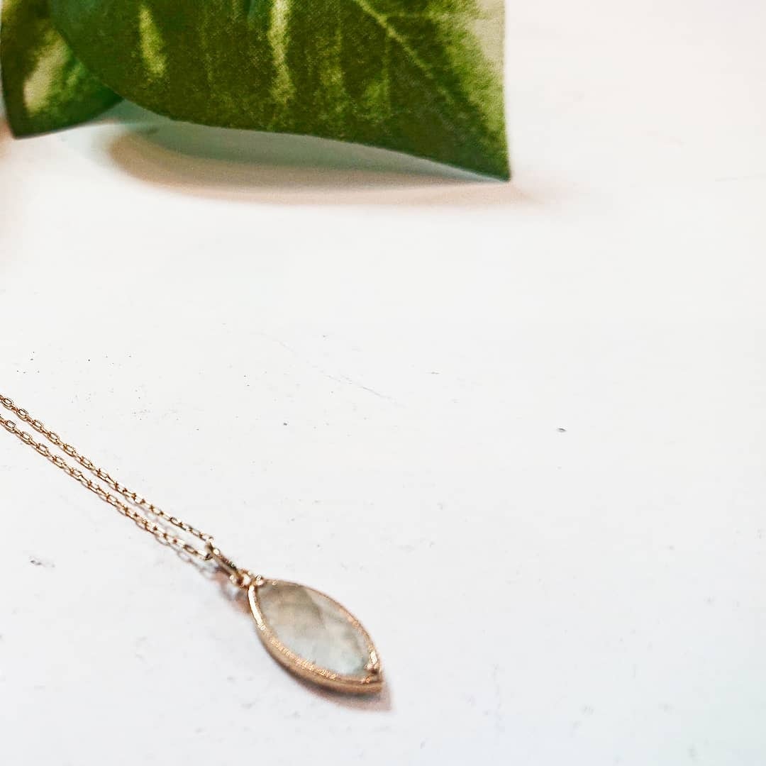 緑がかったグレーが優しくシックな印象を与えるクロライトのK10ネックレス。