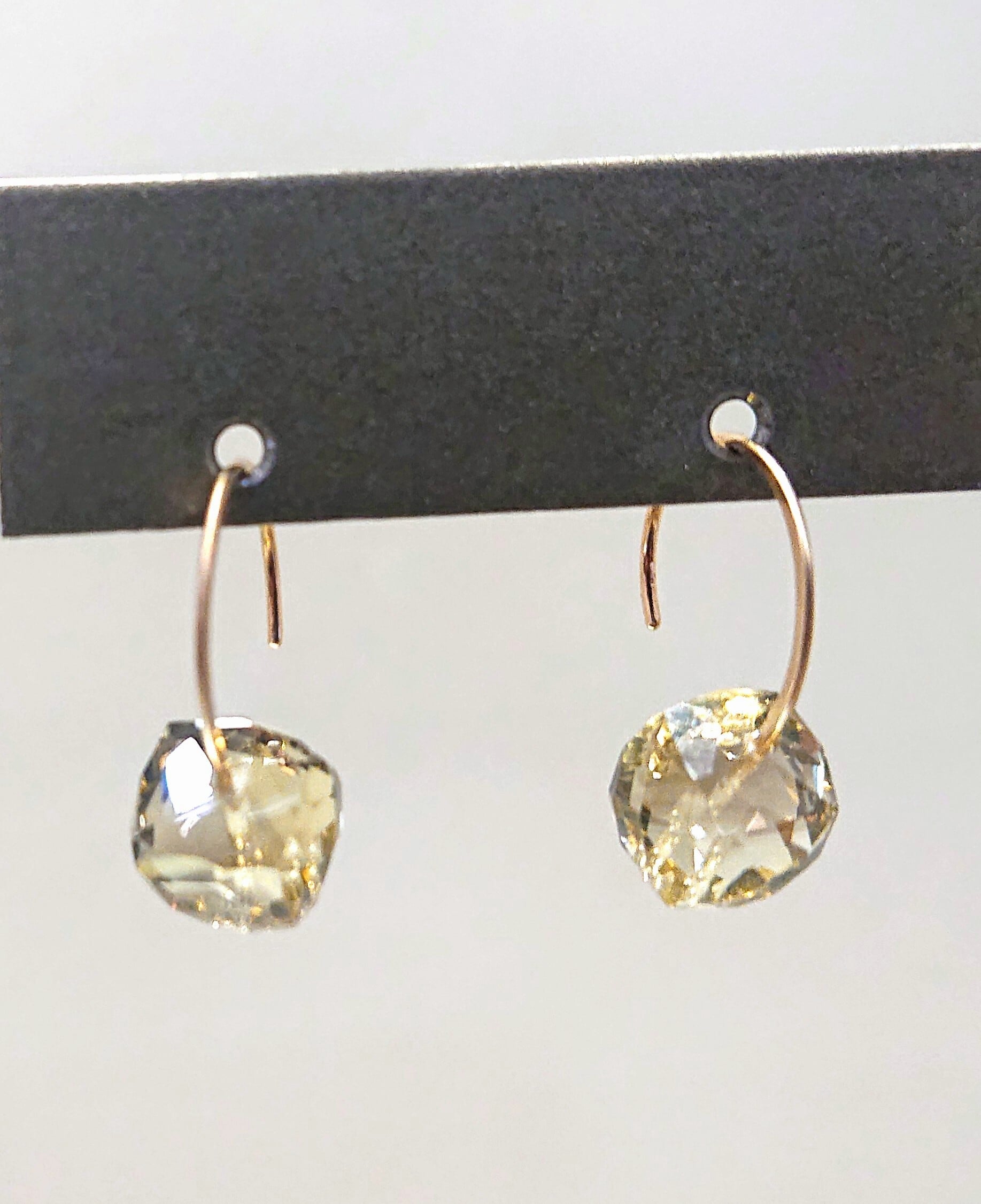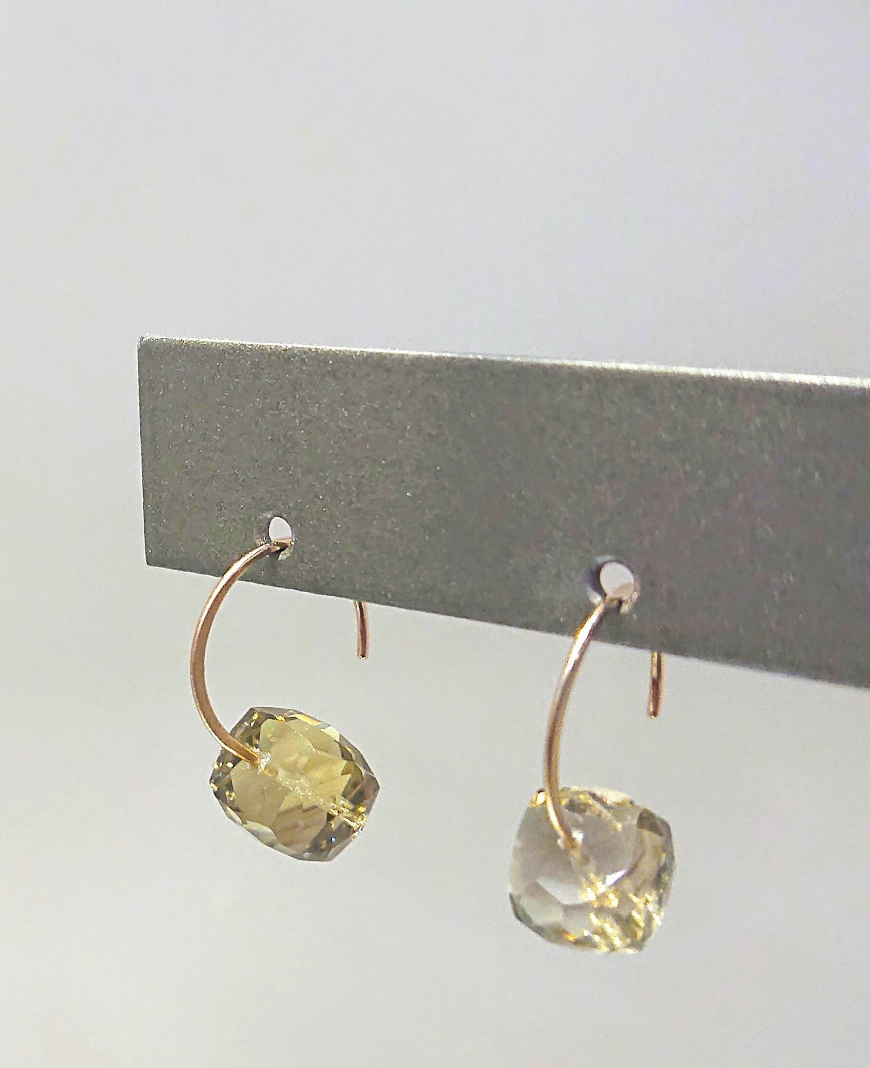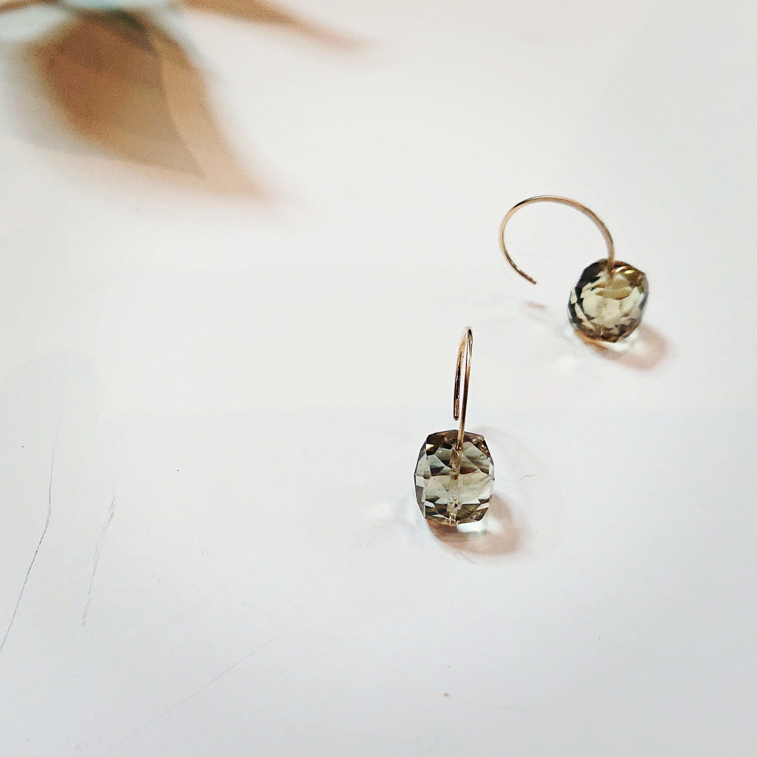 キューブな形状が特徴的なスモーキークォーツのK10フックピアス。