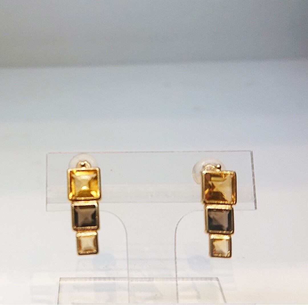 スモーキークォーツをシトリンで挟んだピアスです。