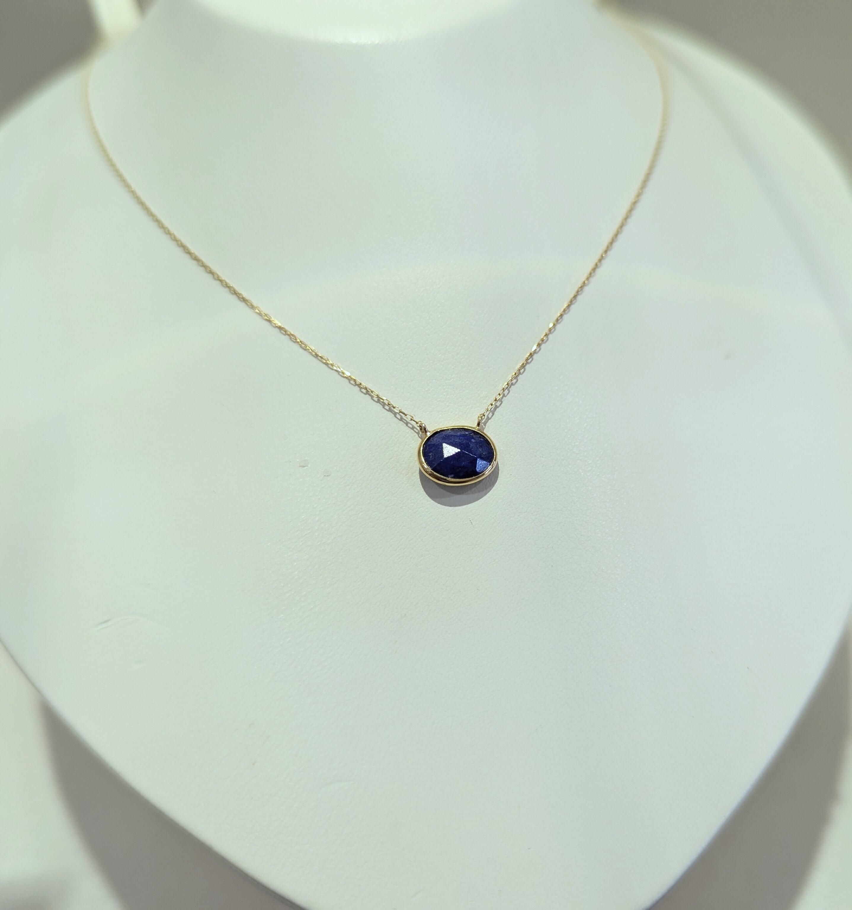 深海藍色が美しい石と光り輝くゴールドのコンビネーションのこのネックレスは、小ぶりでありながら力強い印象を放ちます。